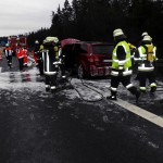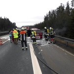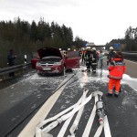 Kurz vor der Ausfahrt Falkenberg in Fahrtrichtung Norden stand ein PKW in Vollbrand auf dem Standstreifen. Vermutlich ein technischer Defekt löste den Brand am Heck des Fahrzeuges aus. Die Insassen konnten das Fahrzeug zum Glück rechtzeitig verlassen. Als ersteintreffende Wehr löschten wir den Brand und leiteten mit Hilfe des VSA den fließenden Verkehr auf der linken Fahrspur am Einsatzort vorbei.